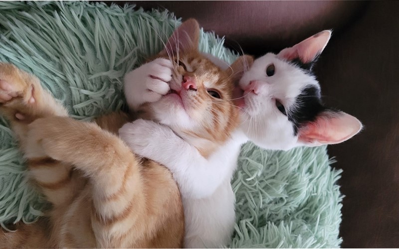 Het is een duo dat vooral verweven is met elkaar. De mens staat voor hen nu nog op de 2e plaats. De kattentaal begrijpen ze uitstekend en wanneer ze met meer soortgenoten zouden huizen is dat dan ook geen probleem. Kinderen vanaf 12 jaar zijn welkom, maar laat die knuffelverwachting achterwege. Het buitenleven zijn deze twee gewend en dat is ook een must voor hun toekomstige nieuwe leven.